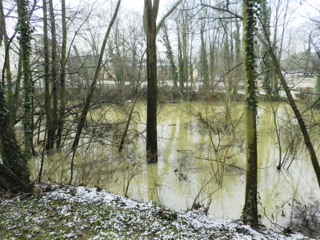 Marne la Vallée ILE de FRANCE - la MARNE à NOISIEL - crue et neige 2